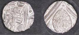 | Description / विवरण | Descrpn./Obv In the centre, a chhatra with Sa and Ta in Gurumukhi script on the left and right of its shaft; traces of the Persian legend seen on the obverse of the bigger Nanakshahi coins of Amritsar mint are also seen. Descrpn./Rev Big peepal leaf and traces of the Persian legend seen on the reverse of the bigger Nanakshahi coins of Amiritsar mint - Shri Amritsarjiv zarb [VS Year] Takht maimanat julus manus Akal Bakht. Especially traces of alif of Akal and te of Takht and maimanat are seen |