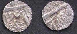 | Description / विवरण | Descrpn./Obv In the centre, a chhatra with Sa and Ta in Gurumukhi script on the left and right of its shaft; traces of the Persian legend seen on the obverse of the bigger Nanakshahi coins of Amritsar mint are also seen. Descrpn./Rev Big peepal leaf and traces of the Persian legend seen on the reverse of the bigger Nanakshahi coins of Amiritsar mint - Shri Amritsarjiv zarb [VS Year] Takht maimanat julus manus Akal Bakht. Especially traces of alif of Akal and te of Takht and maimanat are seen |