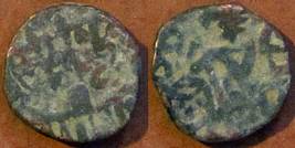 | Description / विवरण | Descrpn./Obv Recumbent bull facing left, wearing jhula (saddle cloth). Above, legend in Sarada script Sri Samantadeva (in cursive letters, mostly truncated and seen partially or off the flan). Descrpn./Rev Rider with lance on caparisoned horse facing right. |