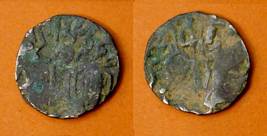 | Description / विवरण | Descrpn./Obv Recumbent bull facing left, wearing jhula (saddle cloth), with trisula (trident) symbol on rump. Above, legend in Sarada script Sri Samantadeva . Descrpn./Rev Rider with lance on caparisoned horse facing right. On left, Sarada letter bhi and on right, Sarada letter ta |