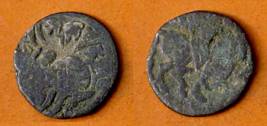 | Description / विवरण | Descrpn./Obv Recumbent bull facing left, wearing jhula (saddle cloth), with trisula (trident) symbol on rump. Above, legend in Sarada script Sri Samantadeva . Descrpn./Rev Rider with lance on caparisoned horse facing right. On left, Sarada letter bhi and on right, Sarada letter ta |