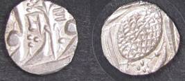 | Description / विवरण | Descrpn./Obv In the centre, a chhatra with Sa and Ta in Gurumukhi script on the left and right of its shaft; traces of the Persian legend seen on the obverse of the bigger Nanakshahi coins of Amritsar mint are also seen. Descrpn./Rev Big peepal leaf and traces of the Persian legend seen on the reverse of the bigger Nanakshahi coins of Amiritsar mint - Shri Amritsarjiv zarb [VS Year] Takht maimanat julus manus Akal Bakht. Especially traces of alif of Akal and te of Takht and maimanat are seen |