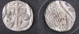 | Description / विवरण | Descrpn./Obv In the centre, a chhatra with Sa and Ta in Gurumukhi script on the left and right of its shaft; traces of the Persian legend seen on the obverse of the bigger Nanakshahi coins of Amritsar mint are also seen. Descrpn./Rev Big peepal leaf and traces of the Persian legend seen on the reverse of the bigger Nanakshahi coins of Amiritsar mint - Shri Amritsarjiv zarb [VS Year] Takht maimanat julus manus Akal Bakht. Especially traces of alif of Akal and te of Takht and maimanat are seen |
