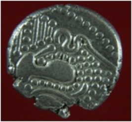 | Description / विवरण | Trench XH 10, Qdt 4, layer 2 It is a silver bullion better known as gadhaiya coin. Shape is crcular and surface is shiny. On the obverse is a vestigial head in its latest form resembles a spade or footprint and on the reverse is a series of dotts and lines. The coin is narrower and thicker in appearance. |