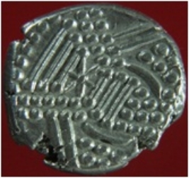 | Description / विवरण | Trench XH 10, Qdt 4, layer 2 It is a silver bullion better known as gadhaiya coin. Shape is circular and surface is shiny. On the obverse is a vestigial head in its latest form resembles a spade or footprint and on the reverse is a series of dotts and lines. The coin is narrower and thicker in appearance. |
