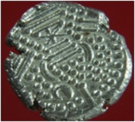 | Description / विवरण | Trench XH 10, Qdt 4, layer 2 It is a silver bullion better known as gadhaiya coin. Shape is circular and surface is shiny. On the obverse is a vestigial head in its latest form resembles a spade or footprint and on the reverse is a series of dotts and lines. The coin is narrower and thicker in appearance. |