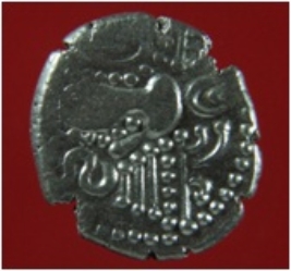 | Description / विवरण | Trench XH 10, Qdt 4, layer 2 It is a silver bullion better known as gadhaiya coin. Shape is circular and surface is shiny. On the obverse is a vestigial head in its latest form resembles a spade or footprint and on the reverse is a series of dots and lines. The coin is narrower and thicker in appearance. |