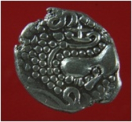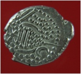 | Description / विवरण | Trench XH 10, Qdt 4, layer 2 It is a silver bullion better known as gadhaiya coin. Shape is circular and surface is shiny. On the obverse is a vestigial head in its latest form resembles a spade or footprint and on the reverse is a series of dots and lines. The coin is narrower and thicker in appearance. |