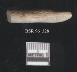 | Description / विवरण | Fragment terracotta bead, cylindrical shaped with a perforation, broken from one end, circular cross-section and fine fabric. |