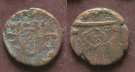 | Description / विवरण | Obverse - Legend rubbed off traced of geometrical design in center. Reverse - Legend rubbed off. |