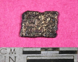 | Description / विवरण | A square shaped copper coin. It is dark red in colour. |