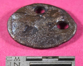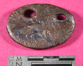 | Description / विवरण | Acopper coin with symbols engraved on it . Its colour is bronze and has glazed surface. |
