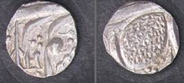 | Description / विवरण | Descrpn./Obv In the centre, a chhatra with Sa and Ta in Gurumukhi script on the left and right of its shaft; traces of the Persian legend seen on the obverse of the bigger Nanakshahi coins of Amritsar mint are also seen. Descrpn./Rev Big peepal leaf and traces of the Persian legend seen on the reverse of the bigger Nanakshahi coins of Amiritsar mint - Shri Amritsarjiv zarb [VS Year] Takht maimanat julus manus Akal Bakht. Especially traces of alif of Akal and te of Takht and maimanat are seen |