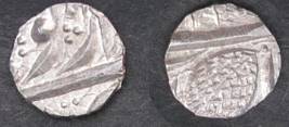 | Description / विवरण | Descrpn./Obv In the centre, a chhatra with Sa and Ta in Gurumukhi script on the left and right of its shaft; traces of the Persian legend seen on the obverse of the bigger Nanakshahi coins of Amritsar mint are also seen. Descrpn./Rev Big peepal leaf and traces of the Persian legend seen on the reverse of the bigger Nanakshahi coins of Amiritsar mint - Shri Amritsarjiv zarb [VS Year] Takht maimanat julus manus Akal Bakht. Especially traces of alif of Akal and te of Takht and maimanat are seen |
