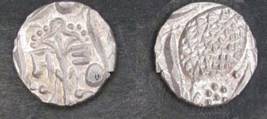 | Description / विवरण | Descrpn./Obv In the centre, a chhatra with Sa and Ta in Gurumukhi script on the left and right of its shaft; traces of the Persian legend seen on the obverse of the bigger Nanakshahi coins of Amritsar mint are also seen. Descrpn./Rev Big peepal leaf and traces of the Persian legend seen on the reverse of the bigger Nanakshahi coins of Amiritsar mint - Shri Amritsarjiv zarb [VS Year] Takht maimanat julus manus Akal Bakht. Especially traces of alif of Akal and te of Takht and maimanat are seen |