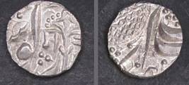 | Description / विवरण | Descrpn./Obv In the centre, a chhatra with Sa and Ta in Gurumukhi script on the left and right of its shaft; traces of the Persian legend seen on the obverse of the bigger Nanakshahi coins of Amritsar mint are also seen. Descrpn./Rev Big peepal leaf and traces of the Persian legend seen on the reverse of the bigger Nanakshahi coins of Amiritsar mint - Shri Amritsarjiv zarb [VS Year] Takht maimanat julus manus Akal Bakht. Especially traces of alif of Akal and te of Takht and maimanat are seen |