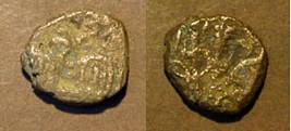 | Description / विवरण | Descrpn./Obv Recumbent bull facing left, wearing jhula (saddle cloth). Above, legend in Sarada script Sri Samantadeva (in cursive letters, mostly truncated and seen partially or off the flan). Descrpn./Rev Rider with lance on caparisoned horse facing right. |