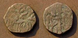 | Description / विवरण | Descrpn./Obv Recumbent bull facing left, wearing jhula (saddle cloth). Above, legend in Sarada script Sri Samantadeva (in cursive letters, mostly truncated and seen partially or off the flan). Descrpn./Rev Rider with lance on caparisoned horse facing right. |