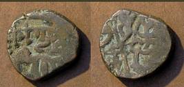 | Description / विवरण | Descrpn./Obv Recumbent bull facing left, wearing jhula (saddle cloth). Above, legend in Sarada script Sri Samantadeva (in cursive letters, mostly truncated and seen partially or off the flan). Descrpn./Rev Rider with lance on caparisoned horse facing right. |
