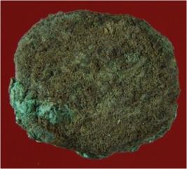 | Description / विवरण | Trench XC 8, Qdt 4, layer 31, depth 870 cms It is a coin made of copper. There is nothing visible on any side due to presence of patina. Shape is circular, surface is rough and colour is copper green. |