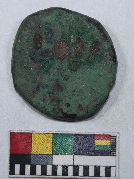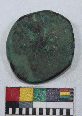 | Description / विवरण | A copper coin casted with an emperor on its obverse side and its reverse side is fully corroded. Its colour is green due to corrosin and has smooth surface. |