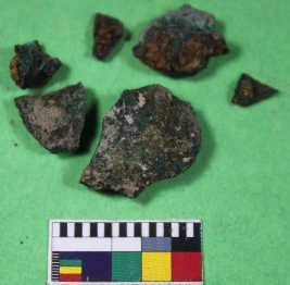 | Description / विवरण | Broken piece of copper coin with green platina. |