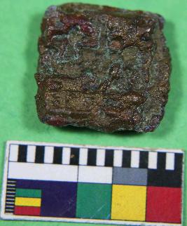 | Description / विवरण | Incrusted coin with square in shaped,it has plant,swastik, ,om symbols are identified on coin surface and surface of the coin slightly damaged. |