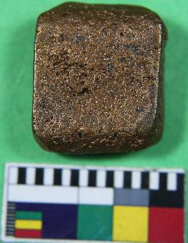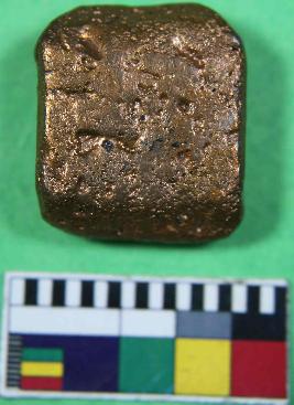 | Description / विवरण | A copper coin having square shape and shiny surface. Its obverse side is inscribed and its colour is brown. |