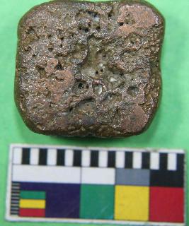 | Description / विवरण | A stamp of cast coin having square shape with flange on its obverse side. Its surface is smooth and colour is brown. |