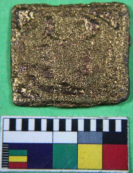 | Description / विवरण | Lead punch mark coin with symbol of animal figure lion and something written above animal on obverse. Square in shaped. |