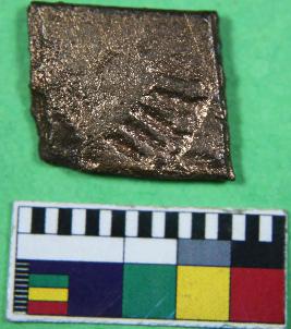 | Description / विवरण | A copper coin having square shape with five Arrow Heads inscribed on its obverse side. Its colour is brown and shiny with smooth surface. |