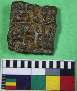 | Description / विवरण | A copper coin having square like shape with cross and tree like image inscribed on obverse side and reverse side animal like imgae inscribed. Its colour is brown and shiny with smooth surface. |