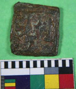 | Description / विवरण | A copper coin having square shape with some image inscribed on obverse side and reverse side animal like image inscribed on it. Its colour is dark copper red and smooth surface. |