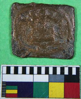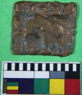 | Description / विवरण | A copper coin having square shape on obverse side elephant inscribed and on reverse side some image inscribed on it. Its colour is dark copper and smooth surface. |