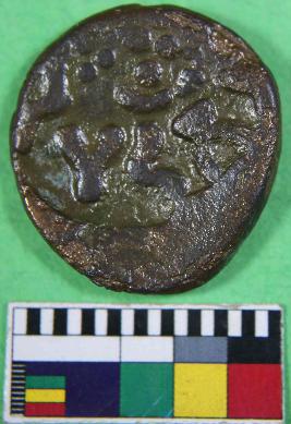 | Description / विवरण | A copper coin having circular shape having some symbols inscribed on it on both sides. There is Y-shaped symbol inscribed on it. Its colour is dark brown and smooth surface. |