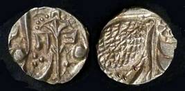 | Description / विवरण | Descrpn./Obv In the centre, a chhatra with Sa and Ta in Gurumukhi script on the left and right of its shaft; traces of the Persian legend seen on the obverse of the bigger Nanakshahi coins of Amritsar mint are also seen. Descrpn./Rev Big peepal leaf and traces of the Persian legend seen on the reverse of the bigger Nanakshahi coins of Amiritsar mint - Shri Amritsarjiv zarb [VS Year] Takht maimanat julus manus Akal Bakht. Especially traces of alif of Akal and te of Takht and maimanat are seen |