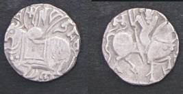 | Description / विवरण | Descrpn./Obv Recumbent bull facing left, wearing jhula (saddle cloth), with trisula (trident) symbol on rump. Above, legend in Sarada script Sri Samantadeva . Descrpn./Rev Rider with lance on caparisoned horse facing right. On left, Sarada letter bhi and on right, Sarada letter ta |