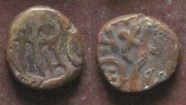 | Description / विवरण | Obverse- Seated bull to left partly Worn out. Reverse- Horse with rider to right, partly Worn out. |