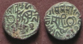 | Description / विवरण | Obverse - Recumbent bull facing left; Devanagari asavari/sri samasorala devi. Reverse - Rider bearing lance on caparisoned horse facing right. Devanagari sri ca/hada deva. |
