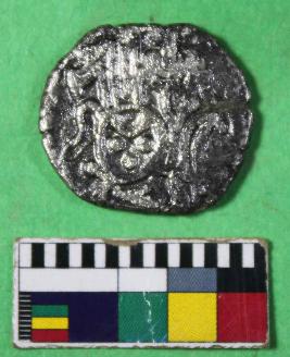 | Description / विवरण | A copper coin circular in shape showing brahmi script inscribed on obverse. Its surface is fine. |