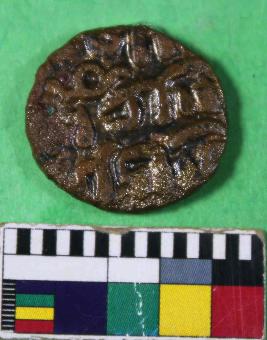| Description / विवरण | A copper coin having irregular circular shape with some motifs or symbol like inscribed on obverse and reverse side. Its colour is dark copper and surface is fine. |
