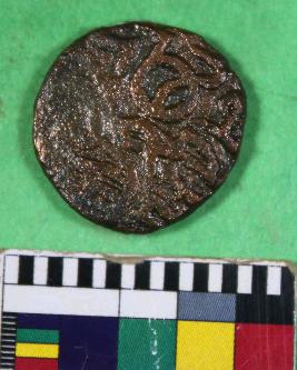 | Description / विवरण | A copper coin having irregular circular shape with some motifs or symbol like inscribed on obverse and reverse side. Its colour is copper and surface is fine. |