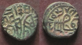 | Description / विवरण | Obverse- Bull to left; around suritan sri alavadin in Devnagari. Reverse- Horsemen to right; above sri hamira. |