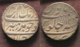 | Description / विवरण | Obverse- Aurangzeb Alamgir/ shah/ zad chu badr-munir/ sikkah/ darjahan. Reverse- Manus/ maimanat sanah 12 julus zarb. |
