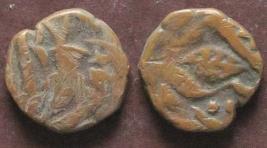 | Description / विवरण | Obverse- a peepal leaf is seen remaining Not clear. partly Worn out Reverse- Persian legend not clar, partly Worn out. |
