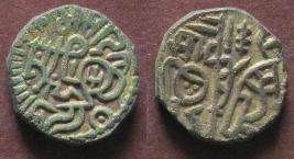 | Description / विवरण | Obverse- Recumbent bull facing left., Devanagari suritana sri samsadina and Reverse- Rider bearing lance on caparisoned horse facing right. Left and right , Devanagari sri/hamirah. |