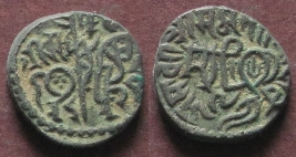 | Description / विवरण | Obverse- Recumbent bull, facing left; Devanagari asavari/sri samasorala devi and Reverse- Rider bearing lance on caparisoned horse facing right. Devanagari sri ca/hada deva. |