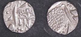 | Description / विवरण | Descrpn./Obv In the centre, a chhatra with Sa and Ta in Gurumukhi script on the left and right of its shaft; traces of the Persian legend seen on the obverse of the bigger Nanakshahi coins of Amritsar mint are also seen. Descrpn./Rev Big peepal leaf and traces of the Persian legend seen on the reverse of the bigger Nanakshahi coins of Amiritsar mint - Shri Amritsarjiv zarb [VS Year] Takht maimanat julus manus Akal Bakht. Especially traces of alif of Akal and te of Takht and maimanat are seen |