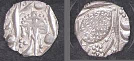 | Description / विवरण | Descrpn./Obv In the centre, a chhatra with Sa and Ta in Gurumukhi script on the left and right of its shaft; traces of the Persian legend seen on the obverse of the bigger Nanakshahi coins of Amritsar mint are also seen. Descrpn./Rev Big peepal leaf and traces of the Persian legend seen on the reverse of the bigger Nanakshahi coins of Amiritsar mint - Shri Amritsarjiv zarb [VS Year] Takht maimanat julus manus Akal Bakht. Especially traces of alif of Akal and te of Takht and maimanat are seen |