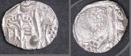 | Description / विवरण | Descrpn./Obv In the centre, a chhatra with Sa and Ta in Gurumukhi script on the left and right of its shaft; traces of the Persian legend seen on the obverse of the bigger Nanakshahi coins of Amritsar mint are also seen. Descrpn./Rev Big peepal leaf and traces of the Persian legend seen on the reverse of the bigger Nanakshahi coins of Amiritsar mint - Shri Amritsarjiv zarb [VS Year] Takht maimanat julus manus Akal Bakht. Especially traces of alif of Akal and te of Takht and maimanat are seen |